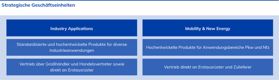 in die Endmärkte Light Vehicles (Pkw) und Heavy Vehicles (Nutzfahrzeuge). Im Teilbereich New Energy sind zahlreiche Anwendungen für Elektromobilität zusammengefasst.