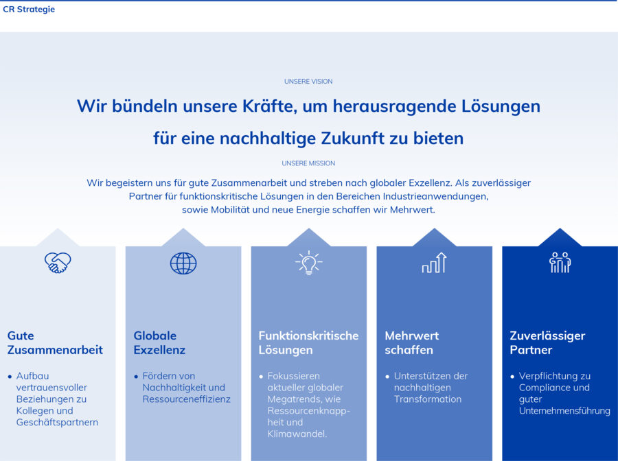 Ausrichtung ist: So steht „Passionate collaboration“ für den Aufbau vertrauensvoller Beziehungen zu Kollegen und Geschäftspartnern. Unter „Global excellence“ versteht die NORMA Group die Förderung von Nachhaltigkeit und Ressourceneffizienz. „Mission-critical solutions“ fokussieren aktuelle globale Megatrends, wie beispielsweise Ressourcenknappheit und Klimawandel in den für die NORMA Group relevanten Märkten. Mit „Add value“ unterstützt das Unternehmen die nachhaltige Transformation und als „Reliable partner“ verpflichtet es sich zu Compliance und guter Unternehmensführung, was Nachhaltigkeit als integralen Bestandteil der strategischen Ausrichtung zeigt.