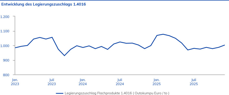 In der Warengruppe der oberflächenveredelten Nichtedelstähle sowie bei kaltgewalzten Bändern, die hauptsächlich in der Region EMEA eingesetzt werden, konnten die Bezugspreise im Jahresverlauf 2025 leicht gesenkt werden – begünstigt durch den rückläufigen Bedarf in vielen Industriesegmenten.